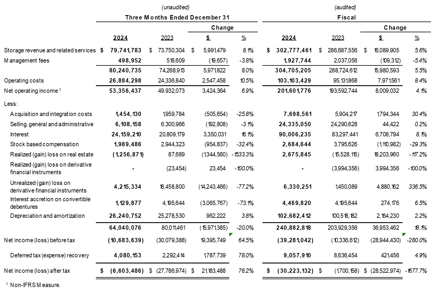 For comprehensive disclosure of StorageVault’s performance for the year ended December 31, 2024 and its financial position as at such date, please see StorageVault’s Consolidated Financial Statements, Management’s Discussion and Analysis and Annual Information Form for the year ended December 31, 2024 filed on SEDAR+ at www.sedarplus.ca.